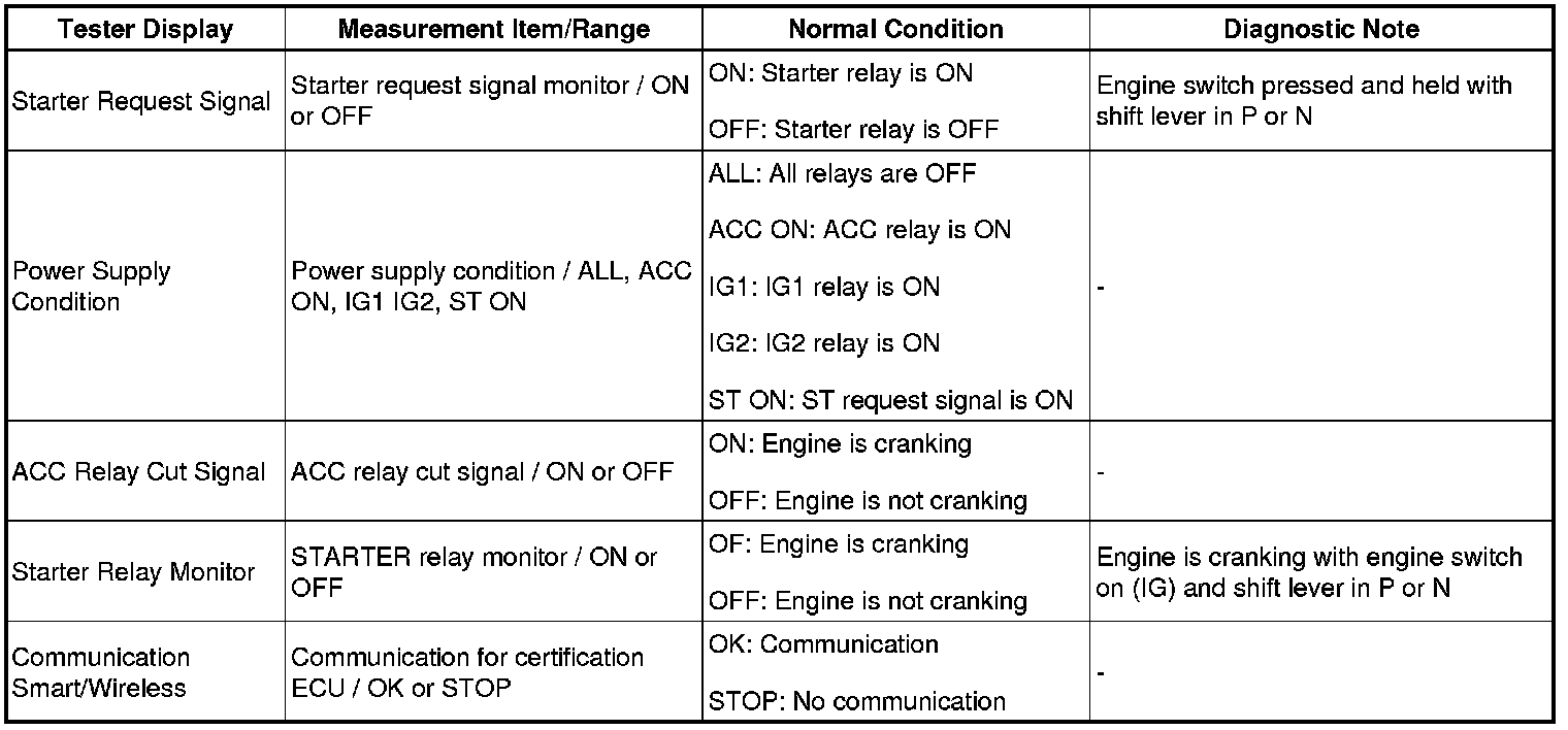 2GR-FE STARTING: SMART ACCESS SYSTEM WITH PUSH-BUTTON START: DATA LIST / ACTIVE TEST