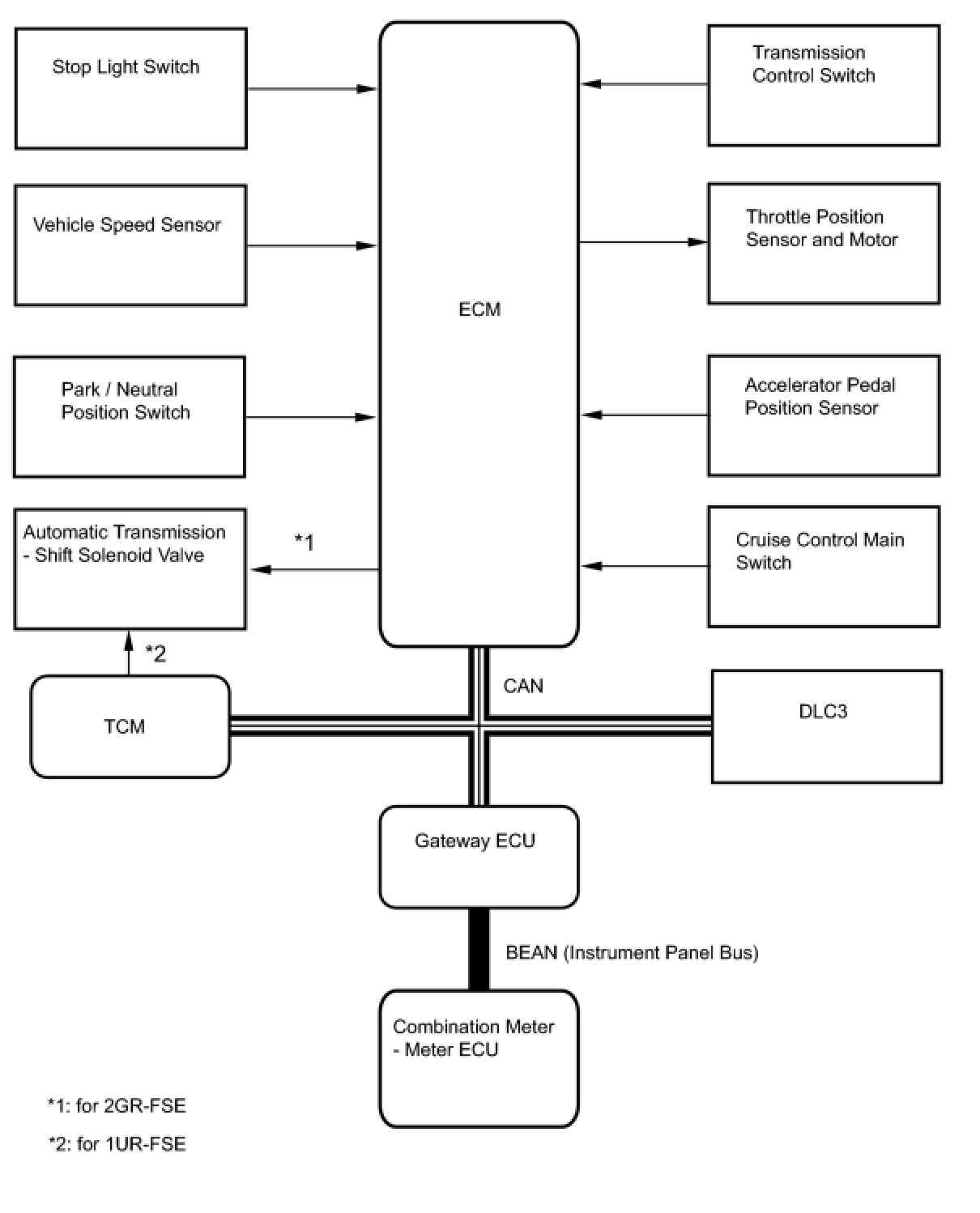 - The ECM cancels the cruise control system when the shift lever is moved to any position except D or S (6th, 5th, 4th gear), and the ECM receives the PNP switch signal. (for 2GR-FSE)