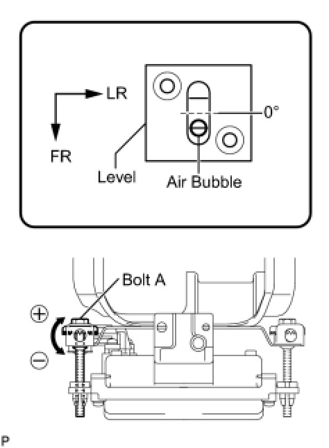 If the bubble is not within the red frame, use a screwdriver to adjust bolt A until the air bubble is within the red frame.