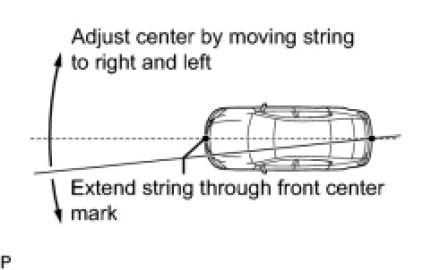 (1) Hang the string (with weight) from the center of the vehicle rear's emblem. Mark the vehicle rear's center point on the ground. Repeat for the front of the vehicle.