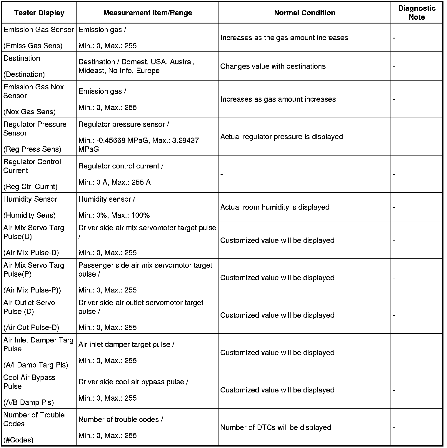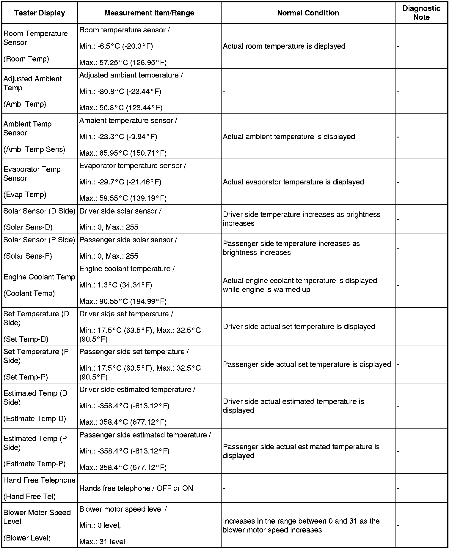 (1) for Air Conditioner: Body Electrical / Air Conditioner / Data List.