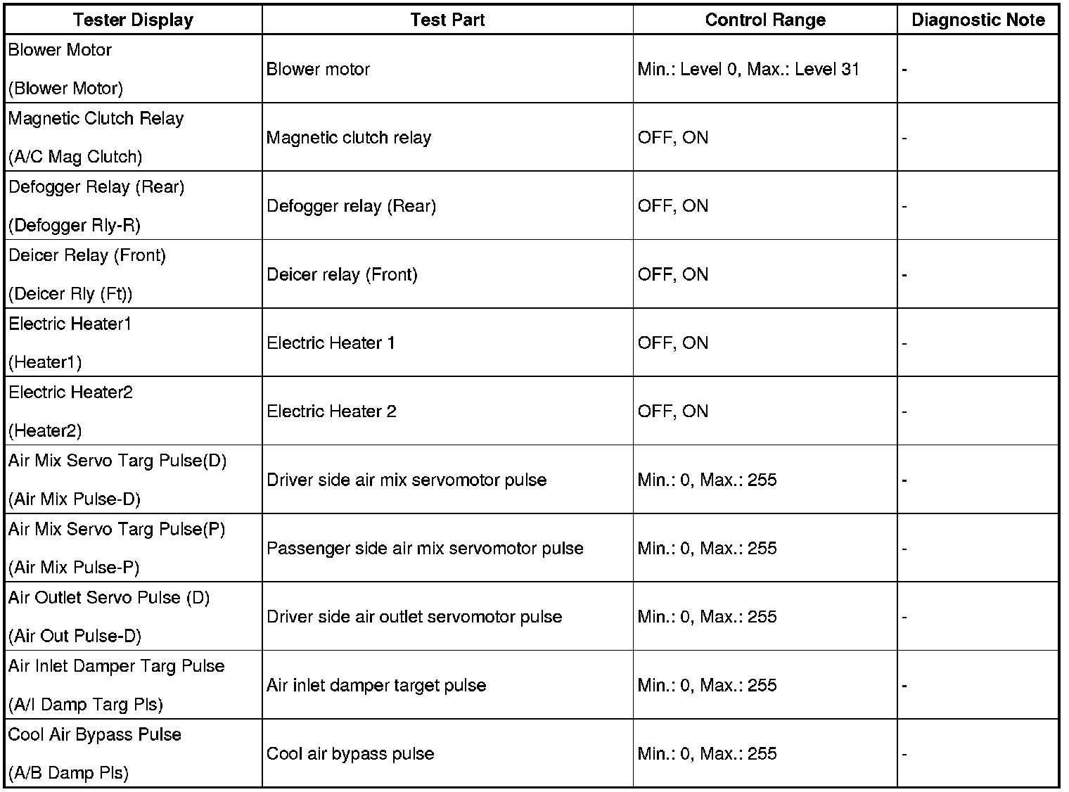 (1) for Air Conditioner: Body Electrical / Air Conditioner / Active Test.