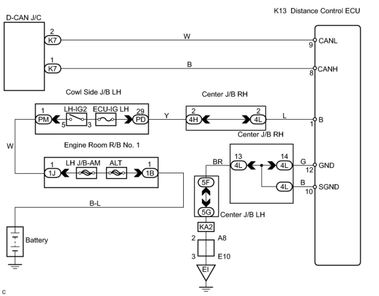 1. CHECK CAN BUS LINE FOR DISCONNECTION (DISTANCE CONTROL ECU SUB BUS LINE)