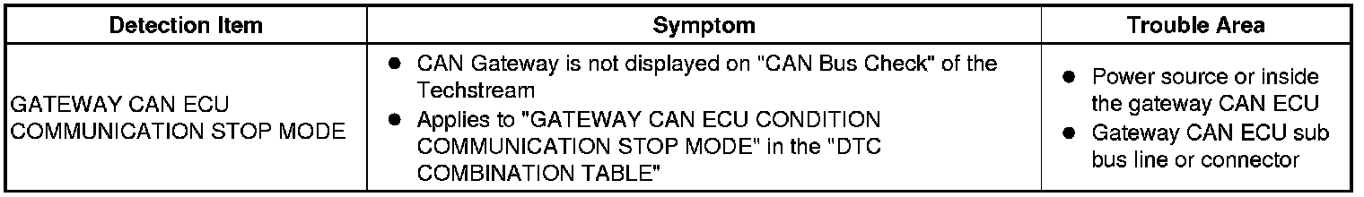 CAN COMMUNICATION: CAN COMMUNICATION SYSTEM: Gateway CAN ECU Communication Stop Mode