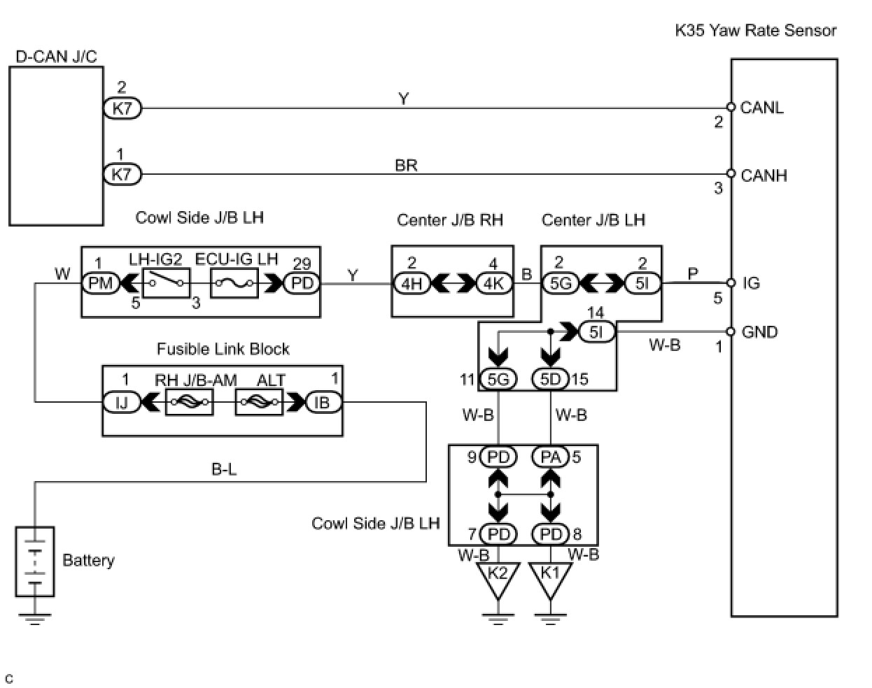 (b) Disconnect the yaw rate sensor connector (K35).