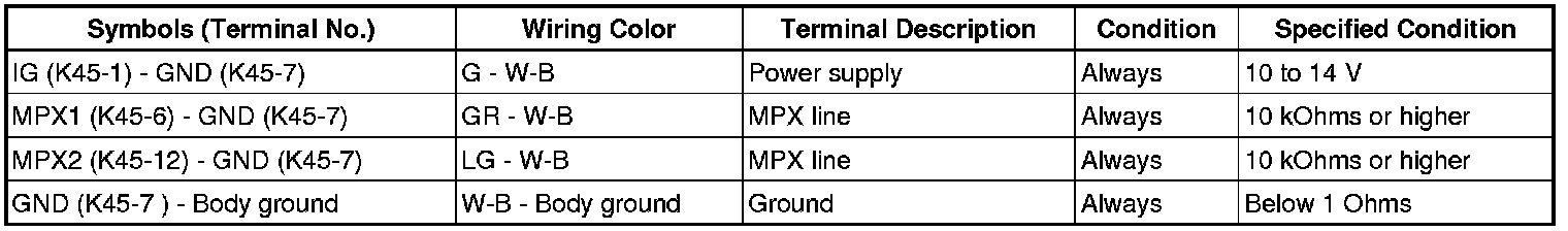 - If the result is not as specified, there may be a malfunction on the wire harness side.