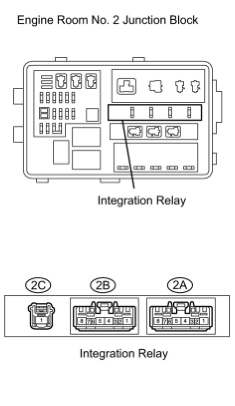 (1) Remove the integration relay from the engine room No. 2 junction block.