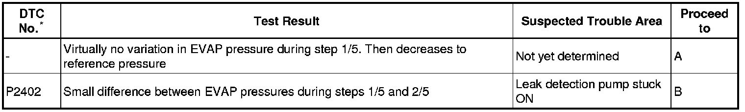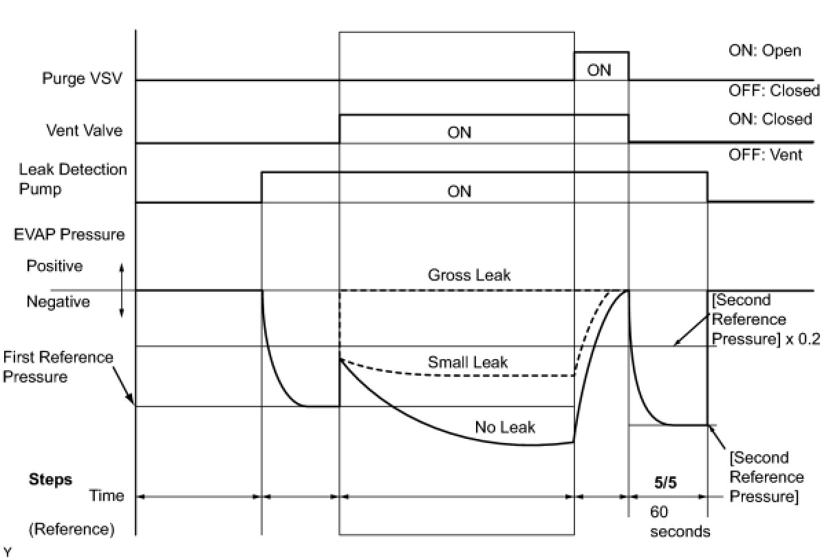 (b) Compare the EVAP pressure in step 3/5 and the second reference pressure (step 5/5).