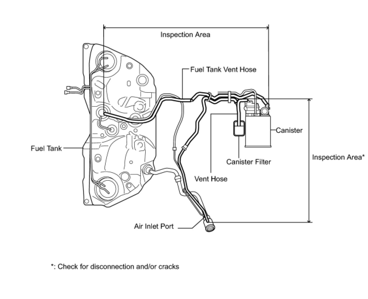 When replacing the canister, check the canister pump module interior and related pipes for water, fuel and other liquids. If liquids are present, check for disconnections and/or cracks in the following: 1) the pipe from the air inlet port to the canister pump module; 2) the canister filter; and 3) the fuel tank vent hose.