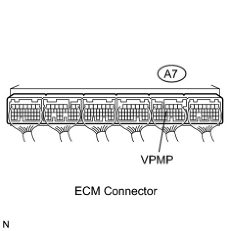 (d) Measure the voltage between terminal VPMP of the ECM connector and the body ground when the vent valve is turned ON (close) and OFF (vent) using the Techstream.
