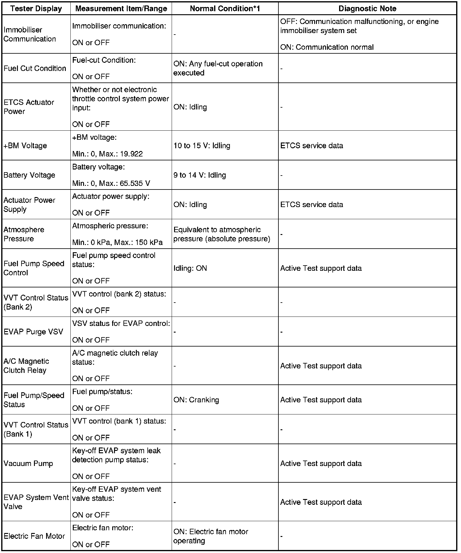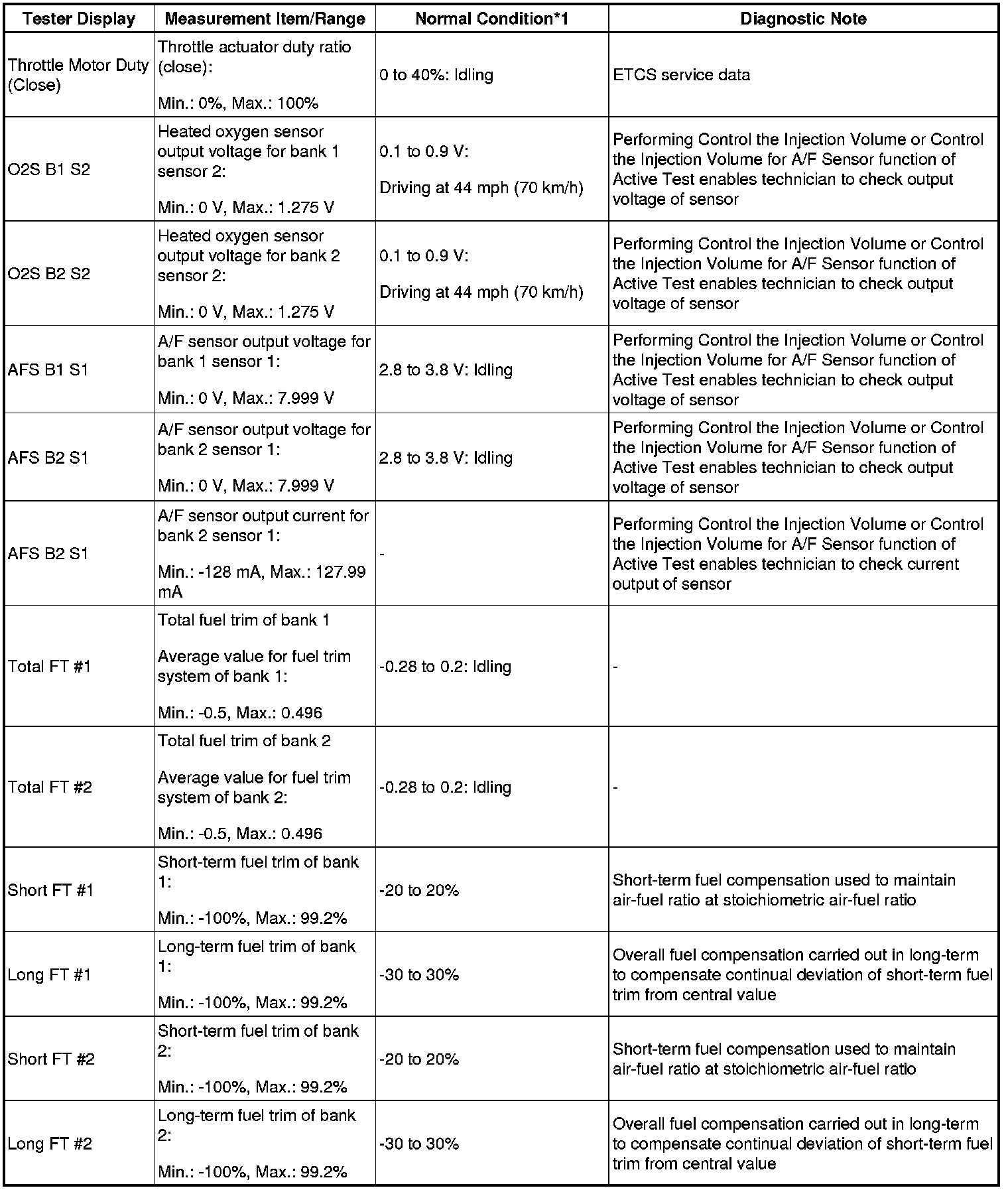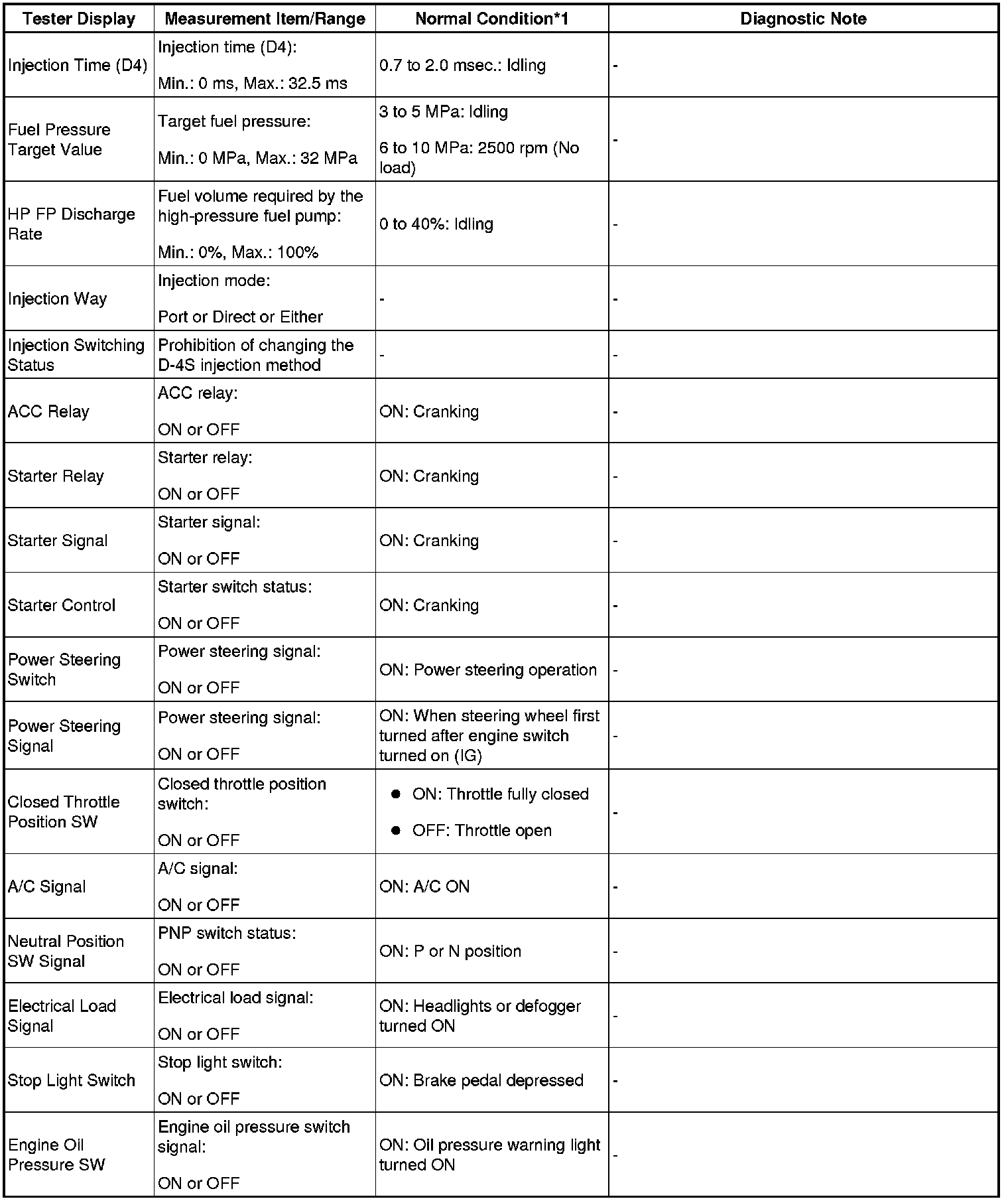 - *1: If no idling conditions are specified, the transmission gear selector lever should be in the P or N position, and the A/C switch and all accessory switches should be off.