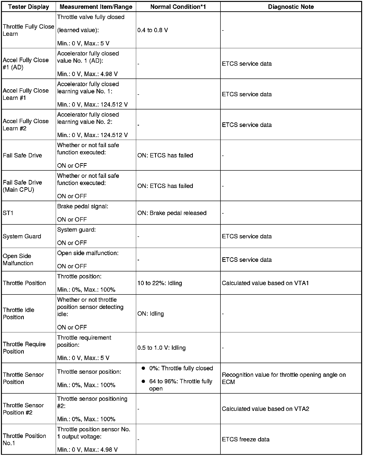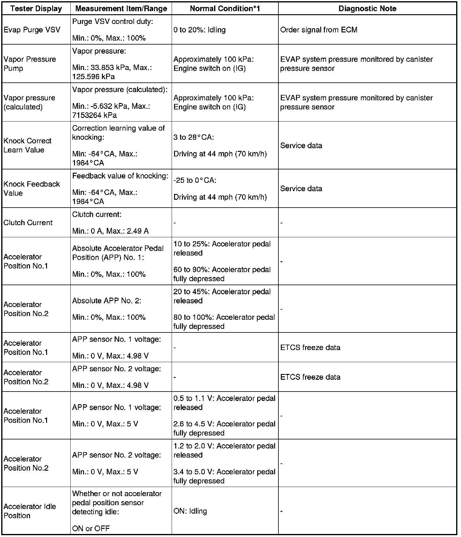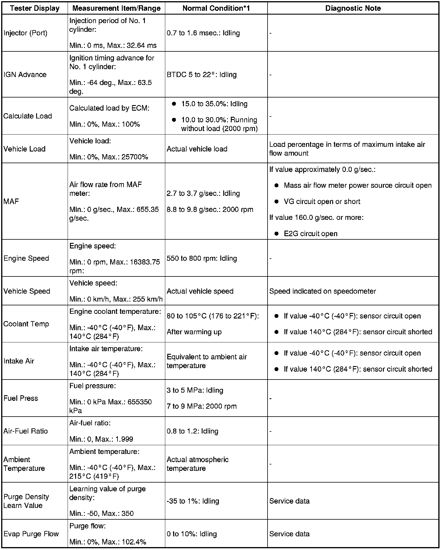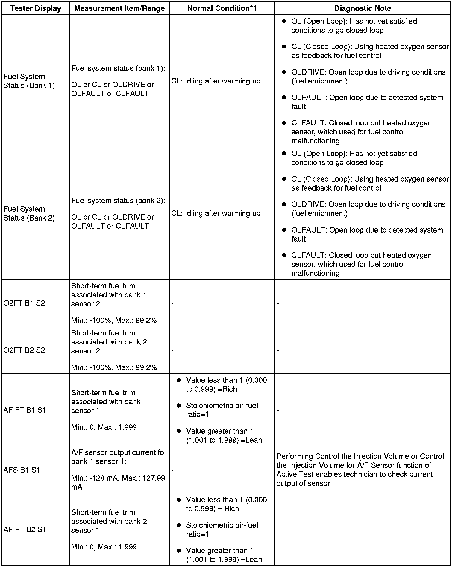- *1: If no idling conditions are specified, the transmission gear selector lever should be in the P or N position, and the A/C switch and all accessory switches should be off.