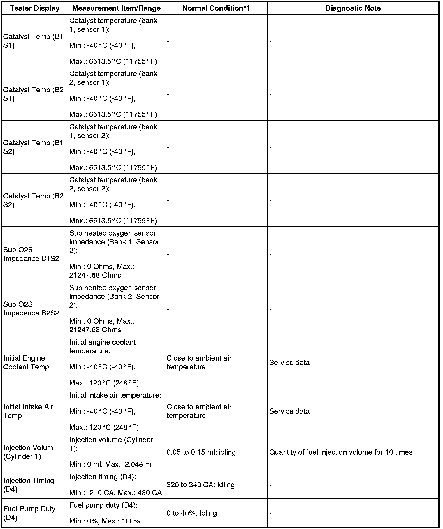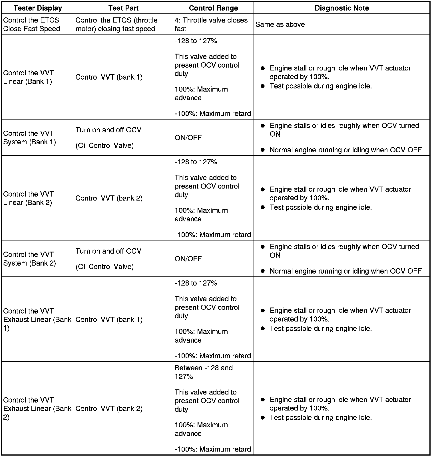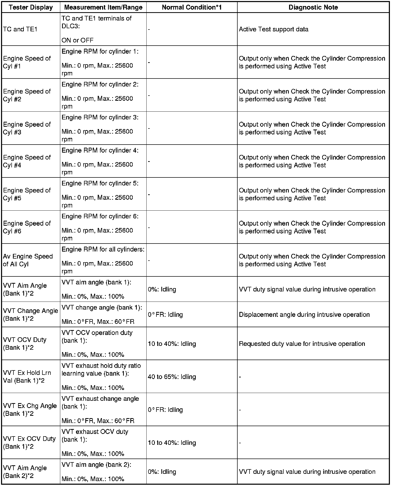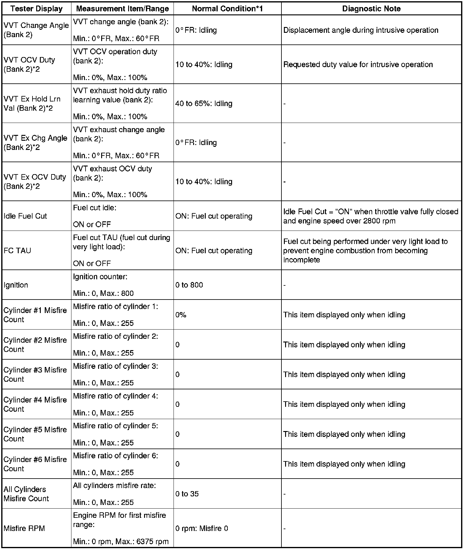 - *2: Data List values are only displayed when performing the following Active Test: VVT B1, VVT B2, VVT EX B1 and VVT EX B2. For other Active Test, the Data List value will be 0.