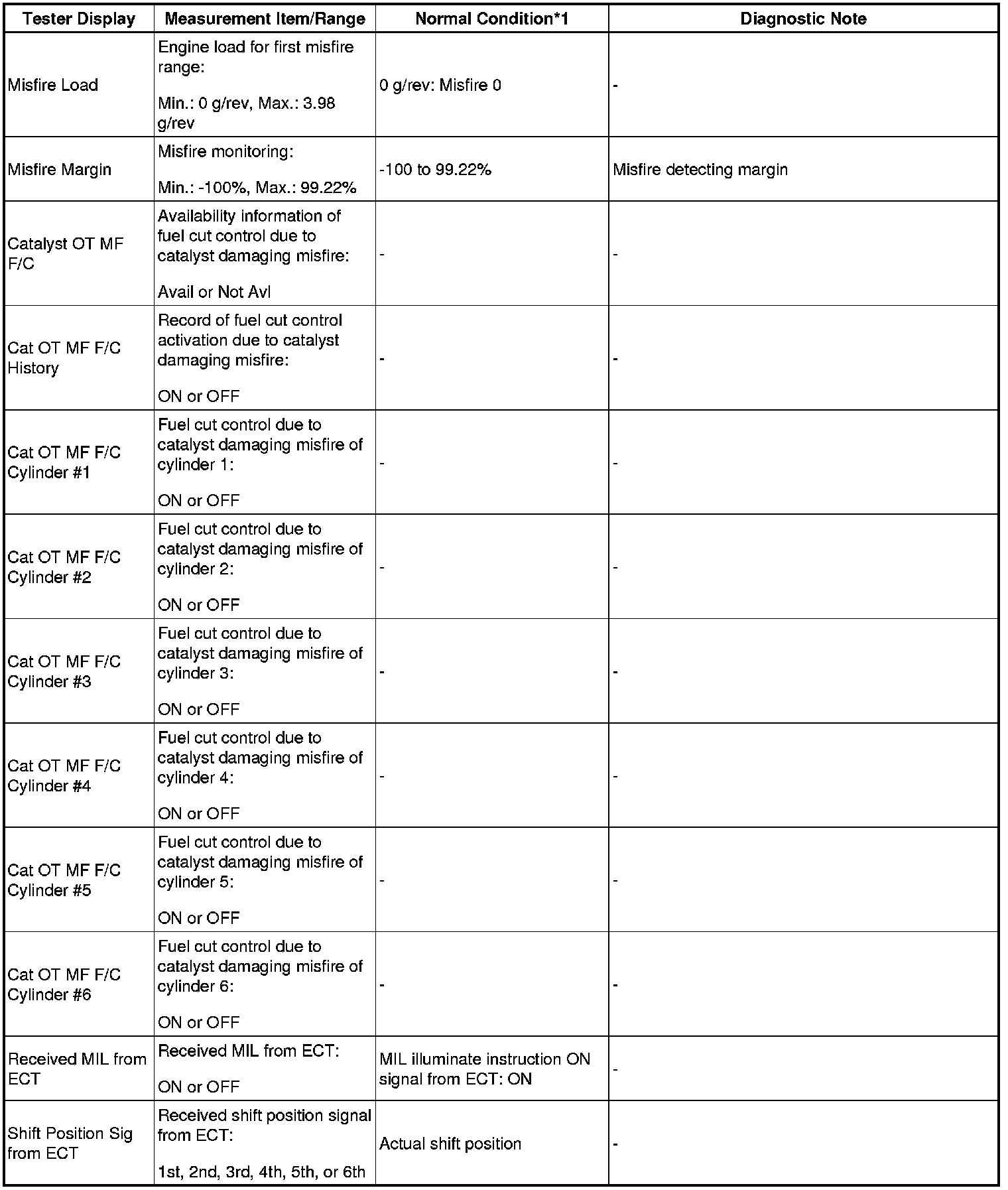*1: If the display of the Data List's Catalyst OT MF F/C item is Not Avl, perform this Active Test with the vehicle stopped and the engine idling. If the display of the Data List's Catalyst OT MF F/C item is Avail, perform this Active Test as described below.