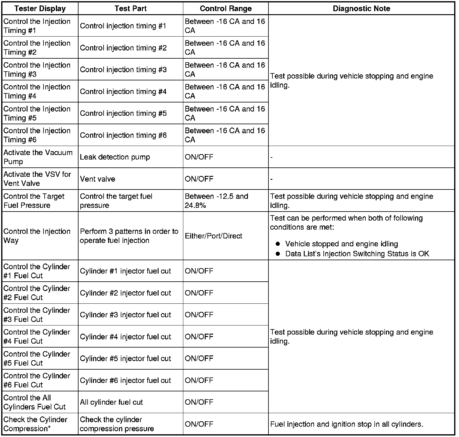 *2: When performing the Active Test item "Check the Cylinder Compression" and then cranking the engine, the ECM stops the fuel injection and ignition, and measures the engine speed for each cylinder.