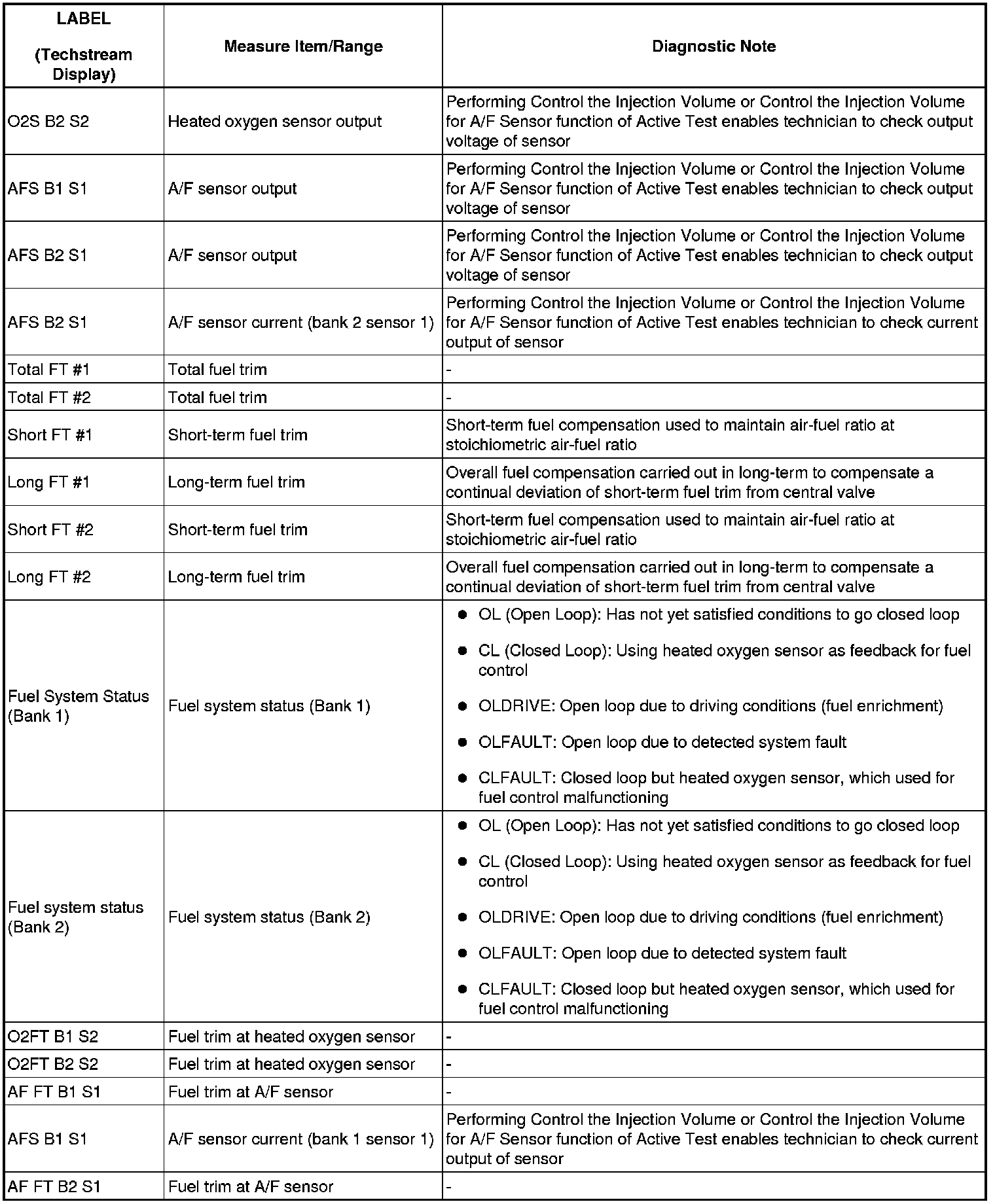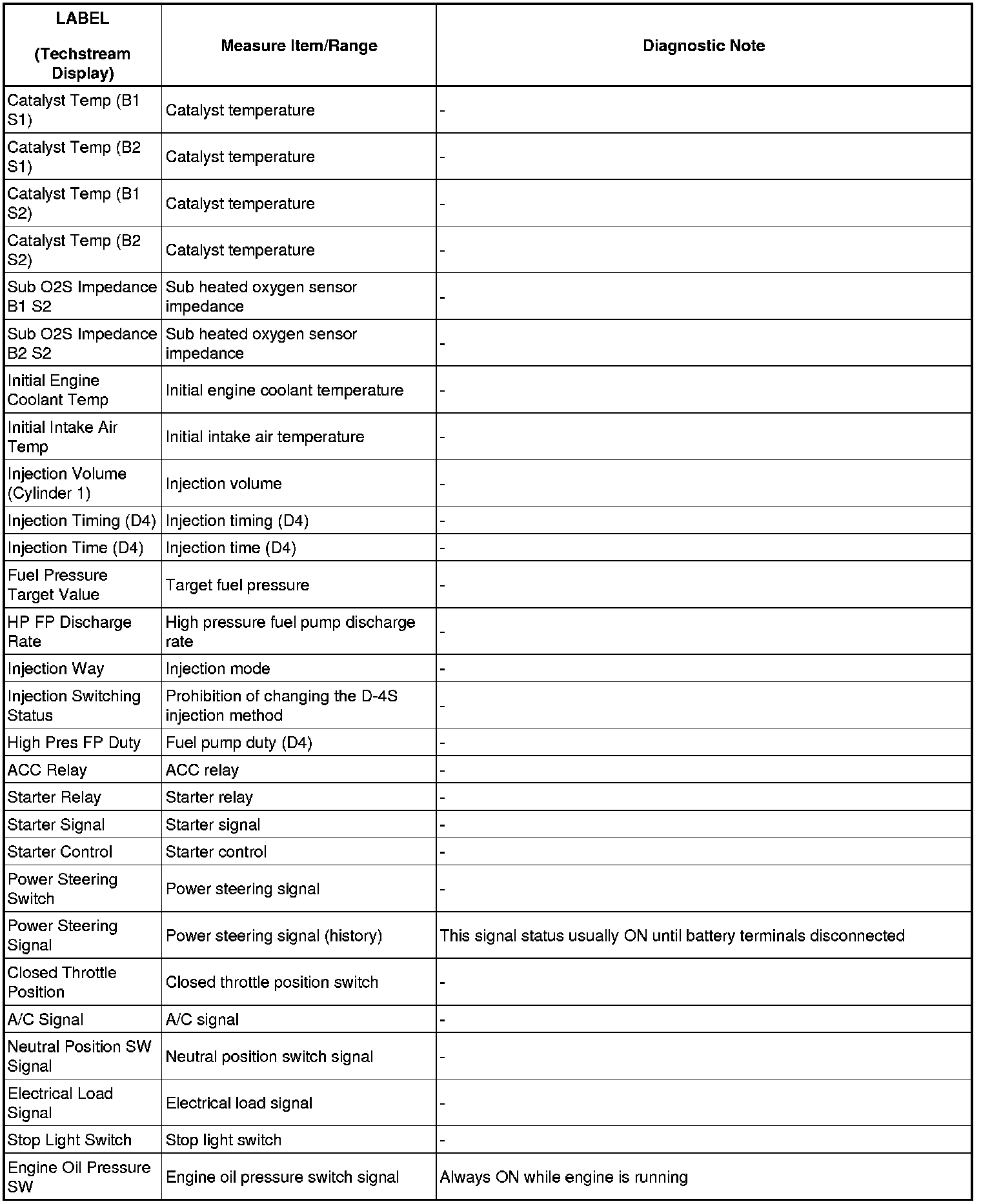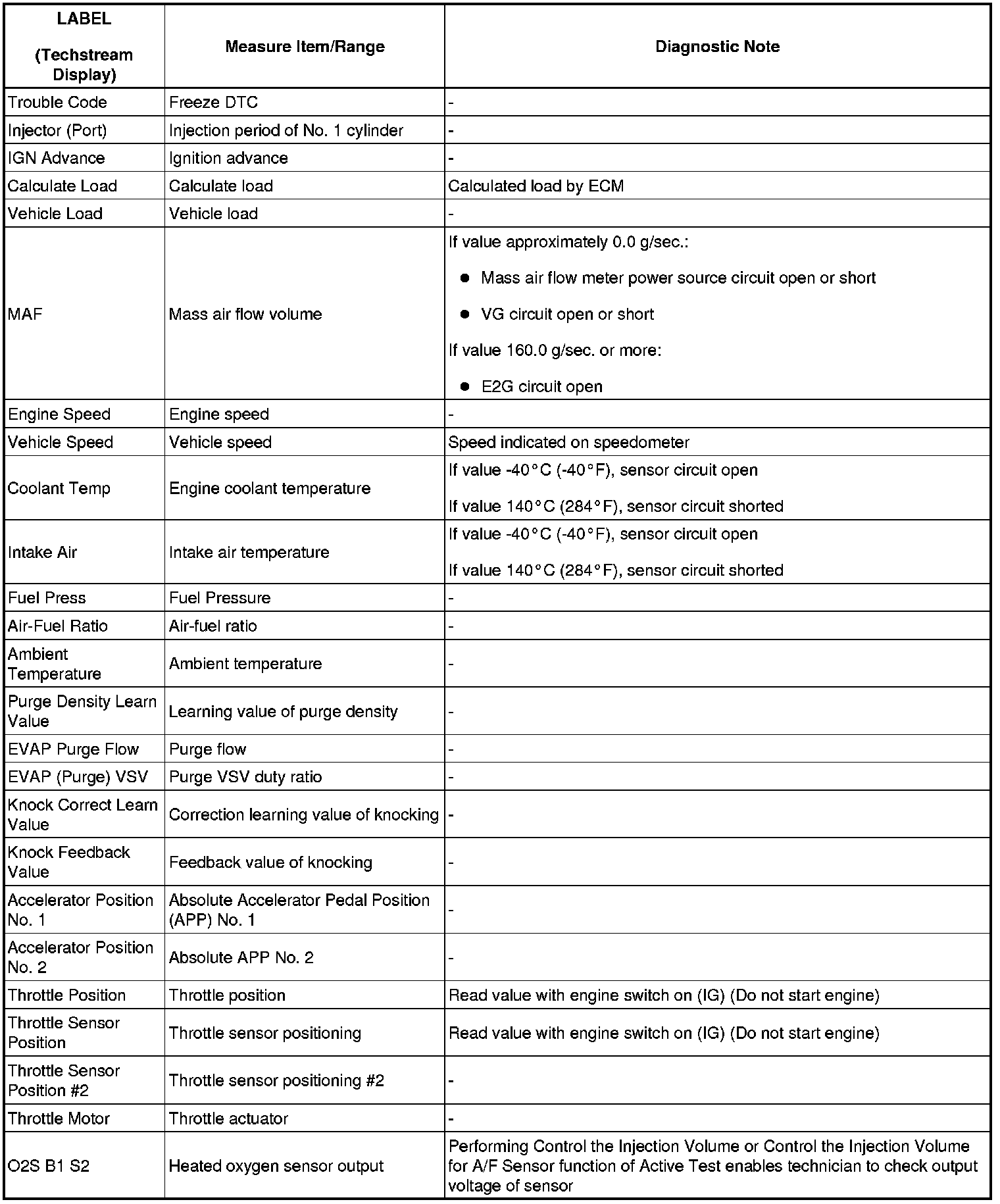 2GR-FSE ENGINE CONTROL SYSTEM: SFI SYSTEM: FREEZE FRAME DATA