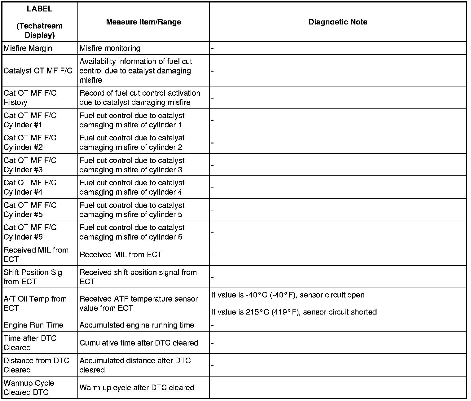 - The ECM records engine conditions in the form of freeze frame data every 0.5 seconds. Using the Techstream, five separate sets of freeze frame data, including the data values at the time when the DTC was set, can be checked.
