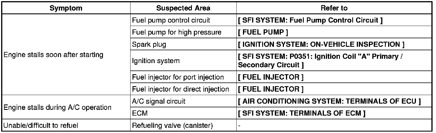 2GR-FSE ENGINE CONTROL SYSTEM: SFI SYSTEM: PROBLEM SYMPTOMS TABLE