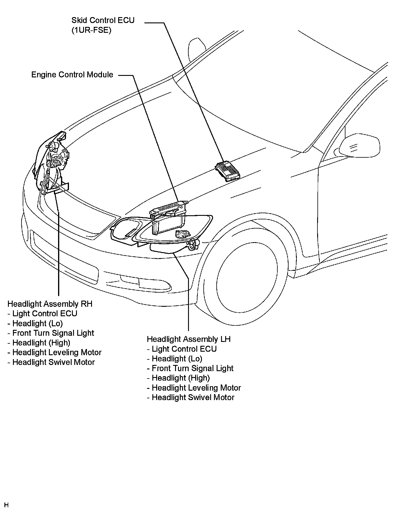 Headlamp Alignment Control Module: Locations