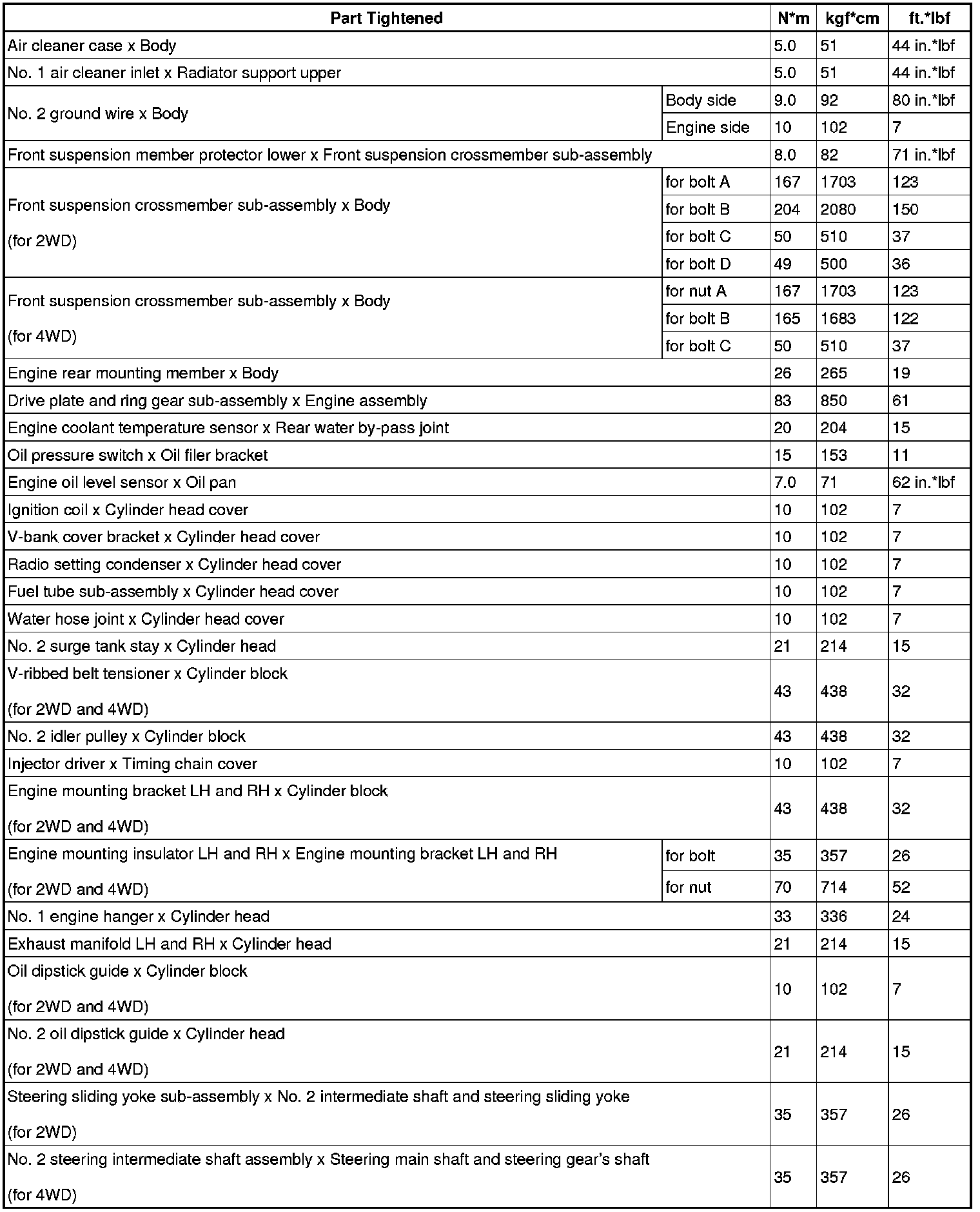 SERVICE SPECIFICATIONS: 2GR-FSE ENGINE MECHANICAL: TORQUE SPECIFICATIONS