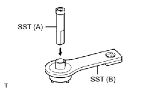 (f) Tighten the pulley by turning SST (B) in the direction shown in the illustration.