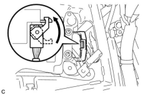 (c) Connect the power steering ECU connector on the left side of the vehicle and securely lock the lock lever as shown in the illustration.