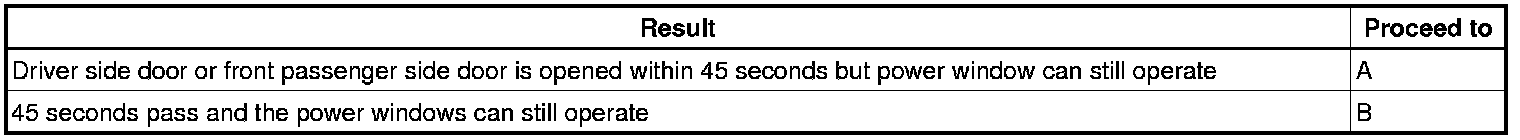 During AUTO function operation, the window operation will continue until complete even if 45 seconds have passed or a door is opened.