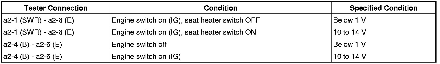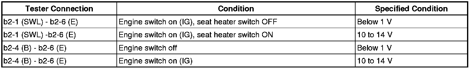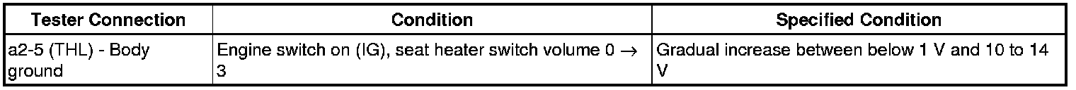 If the result is not as specified, the seat heater control may have a malfunction.