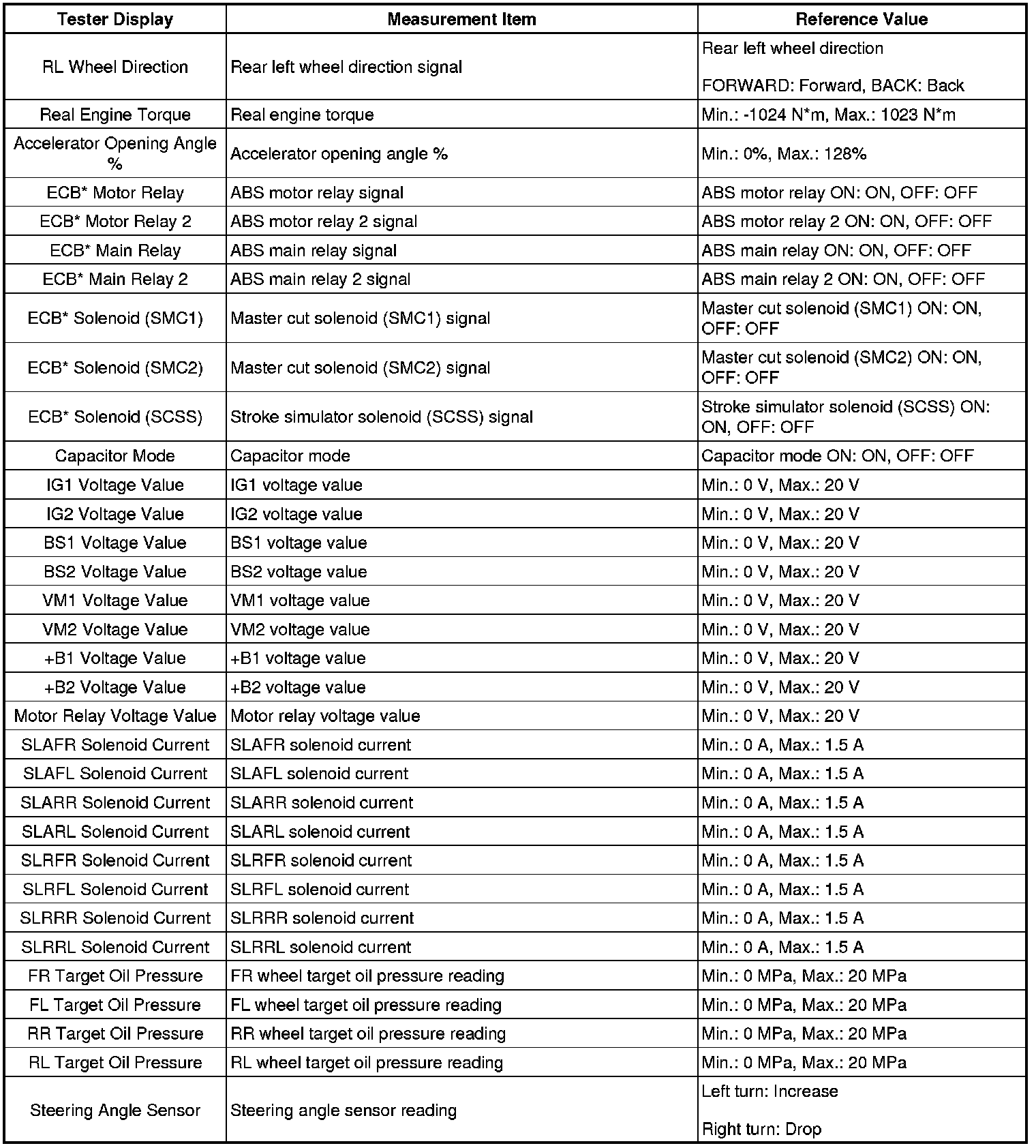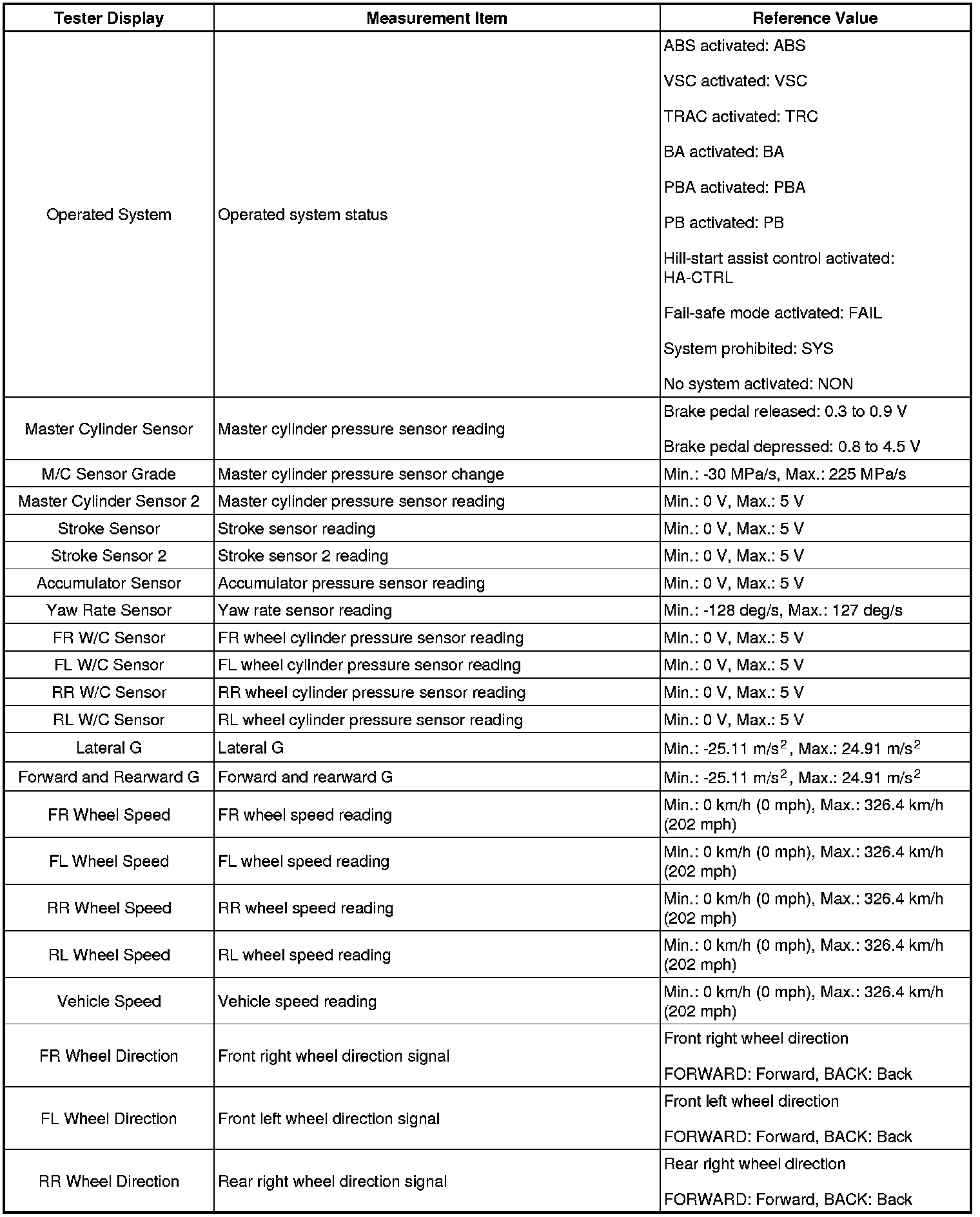 - Freeze Frame Data at the time the ABS, BA, TRAC or VSC operates: