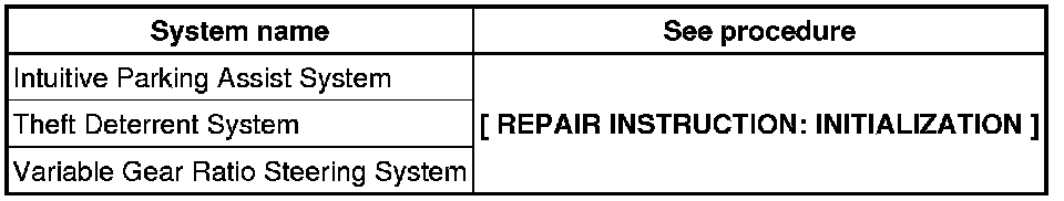 - When the cable is disconnected from the negative (-) battery terminal, initialize the following system(s) after the cable is reconnected.