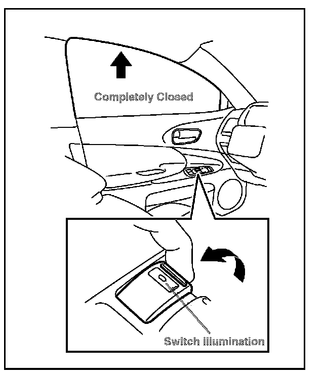 3. Pull up the driver's door power window switch until the window closes, and hold it for approximately one second.