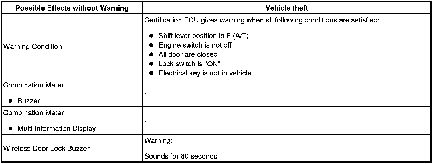 (d) If the electrical key is located inside of the cabin, the door lock function will not operate and the alarm buzzer (beep sound) will sound for 2 seconds.