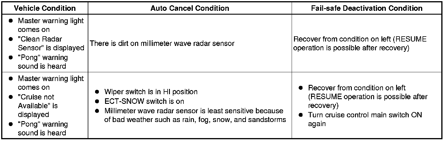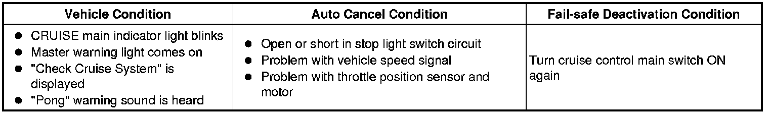 CRUISE CONTROL: DYNAMIC RADAR CRUISE CONTROL SYSTEM: FAIL-SAFE CHART