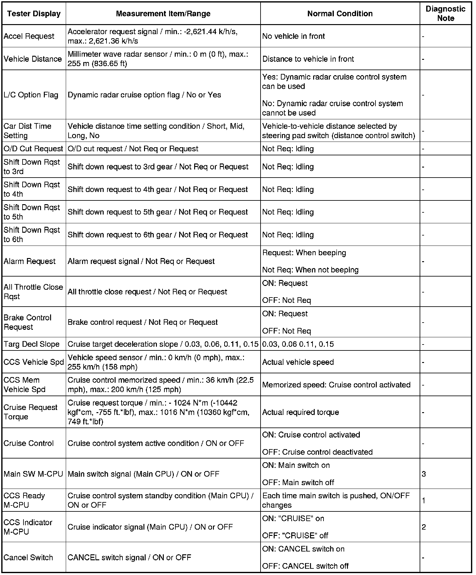 CRUISE CONTROL: DYNAMIC RADAR CRUISE CONTROL SYSTEM: DATA LIST / ACTIVE TEST