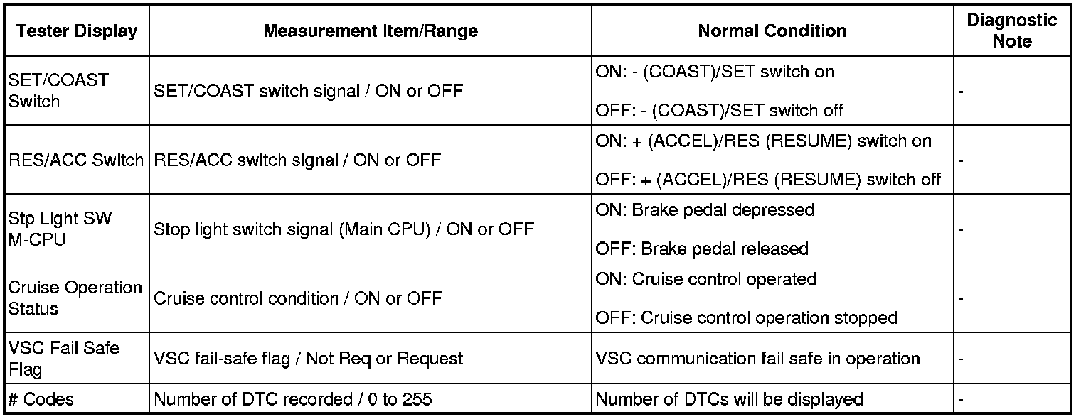 HINT: Using the Techstream to read the Data List allows the values or states of switches, sensors, actuators and other items to be read without removing any parts. This non-intrusive inspection can be very useful because intermittent conditions or signals may be discovered before parts or wiring is disturbed. Reading the Data List information early in troubleshooting is one way to save diagnostic time.