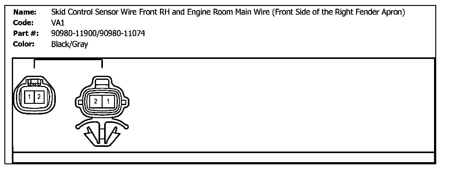 VA1 (Skid Control Sensor Wire Front RH And Engine Room Main Wire (Front Side Of The Right Fender Apron)):