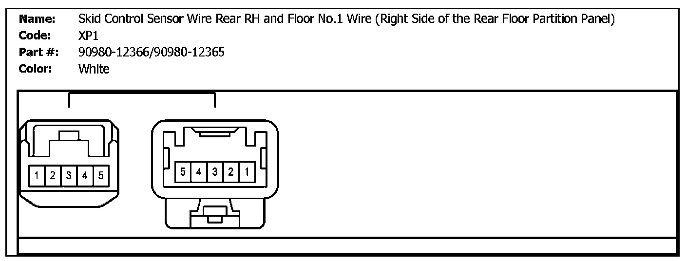 XP1 (Skid Control Sensor Wire Rear RH And Floor No.1 Wire (Right Side Of The Rear Floor Partition Panel)):