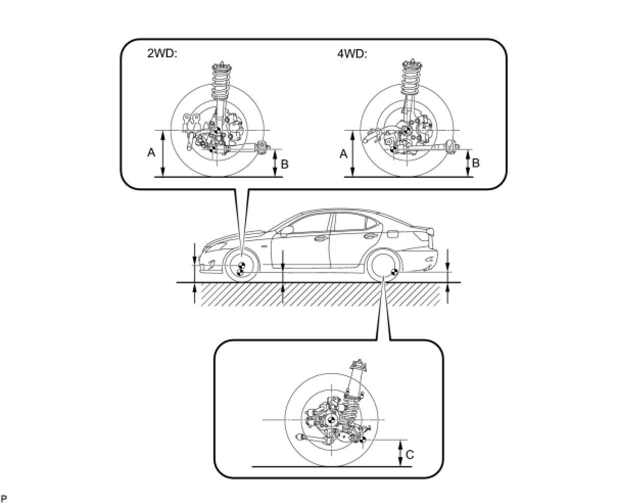 (a) Bounce the vehicle at the corners up and down to stabilize the suspension and inspect vehicle height.
