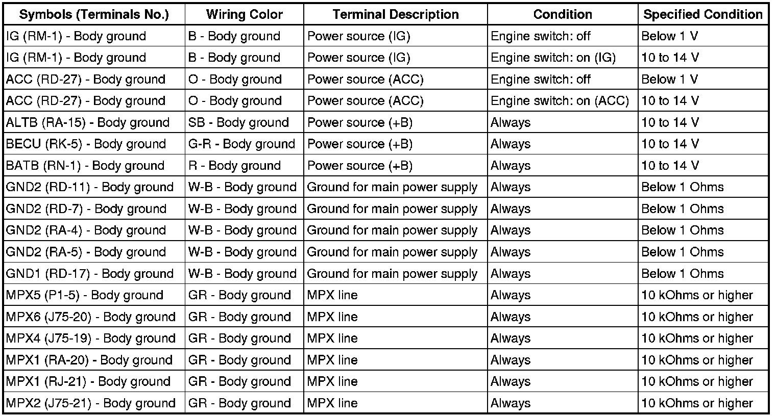 MULTIPLEX COMMUNICATION SYSTEM: TERMINALS OF ECU