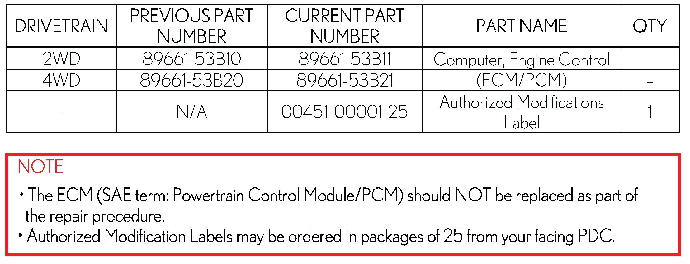 - ECM part number [Refer to the Parts Information section for the CURRENT PART NUMBER]