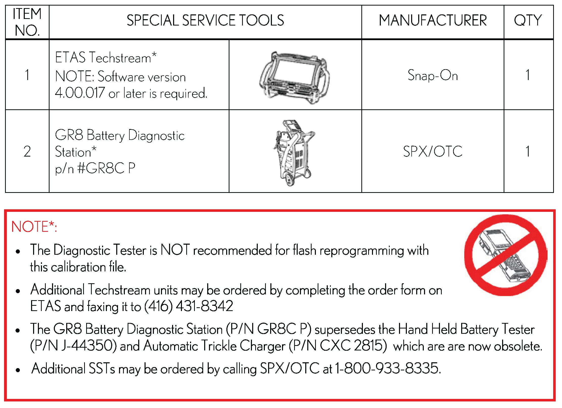 - For details on how to use the GR8 Battery Diagnostic Station, refer to the GR8 Battery Diagnostic Station Instruction Manual located on ETAS/TIS library > Tools > tools and equipment > GR8 Battery Diagnostic Station Instruction Manual.