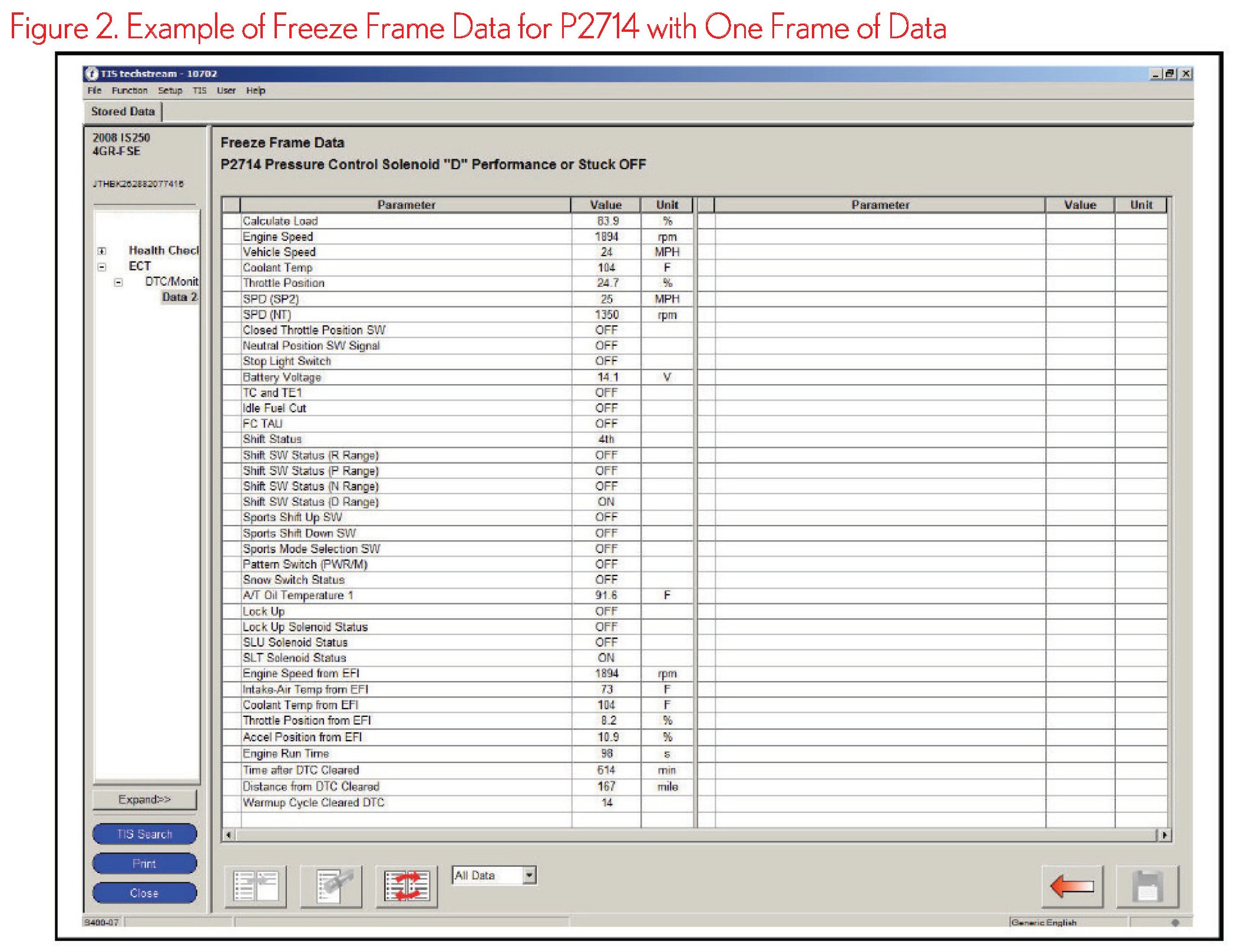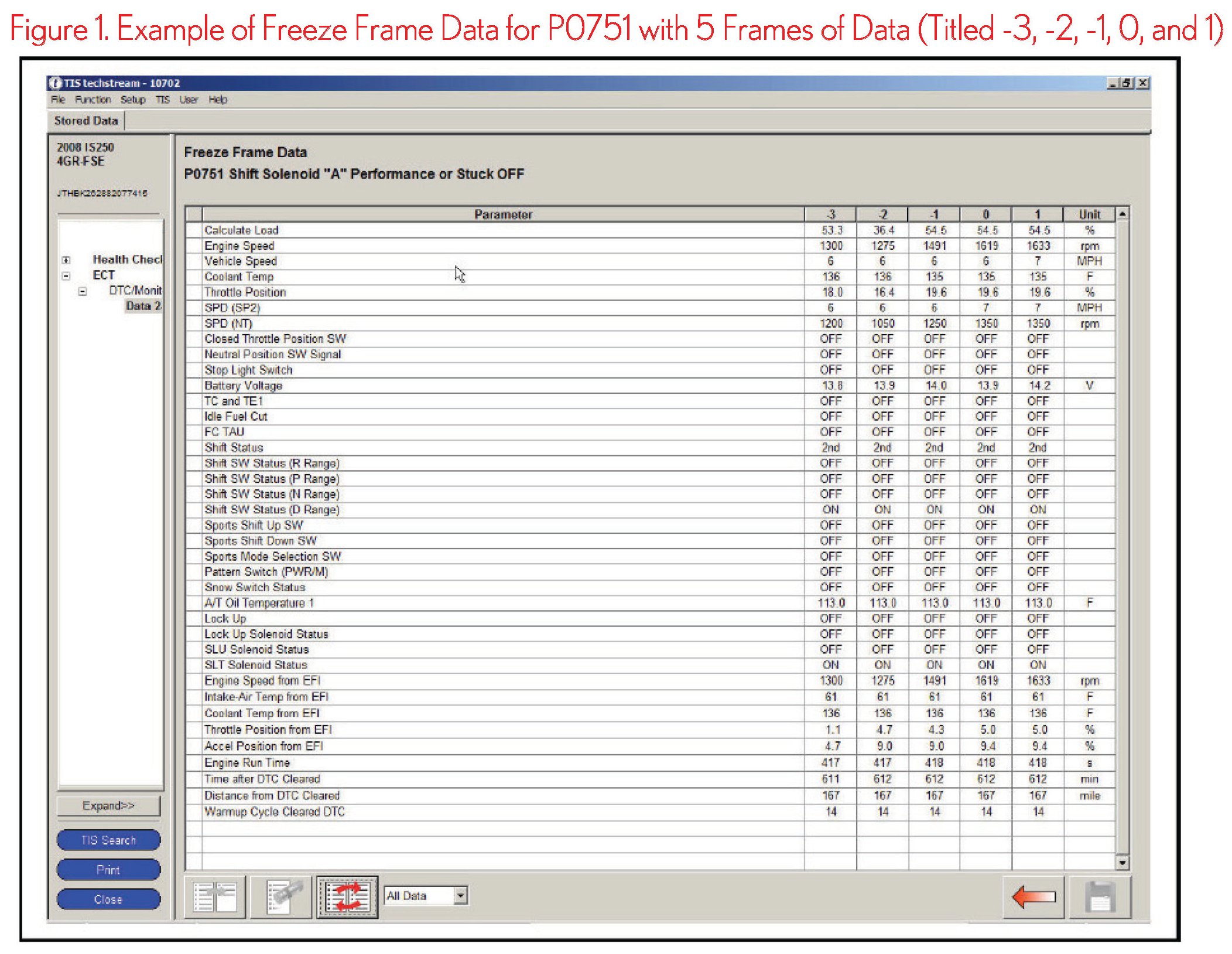 The DTC that is stored first will have 5 frames of Freeze Frame Data stored (see Figures 1 and 2).