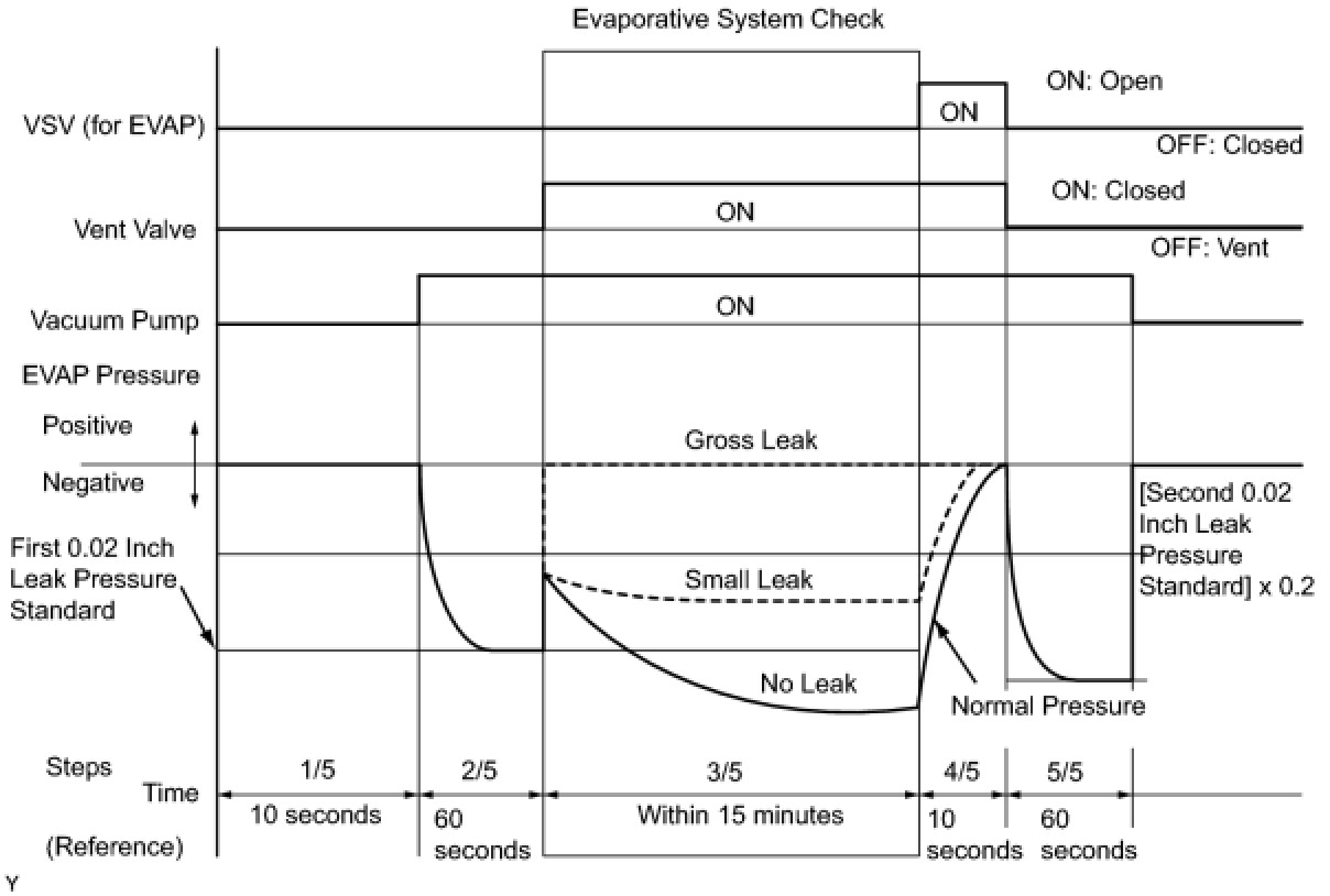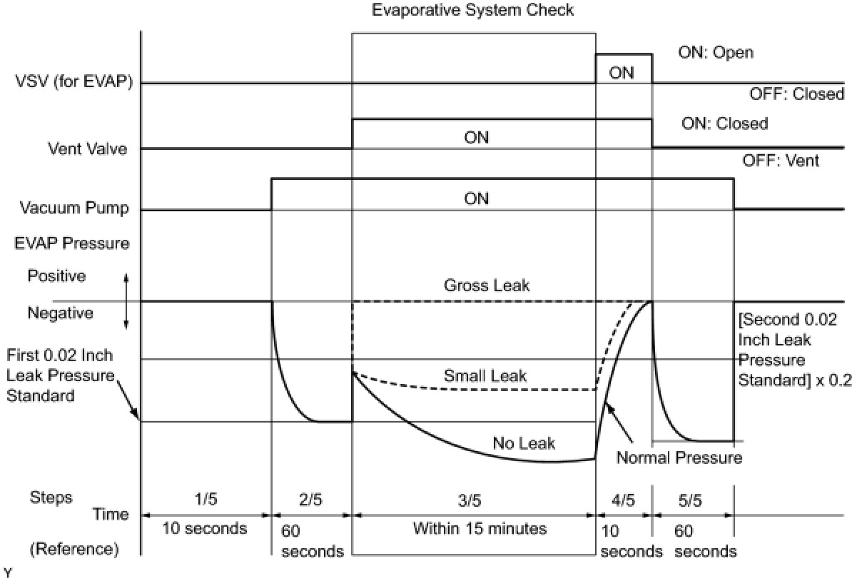 (b) Compare the EVAP pressure in step 3/5 and the second 0.02 inch leak pressure standard (step 5/5).