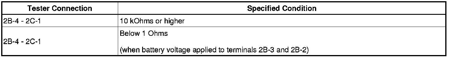 (1) Apply battery voltage to both terminals. Check that the pump operates.