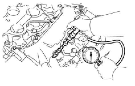 (p) If the cylinder compression in one or more cylinders is low, pour a small amount of engine oil into the cylinder through the spark plug hole. Then perform the first 3 steps under "inspect the cylinder compression pressure" for the cylinders with low compression.