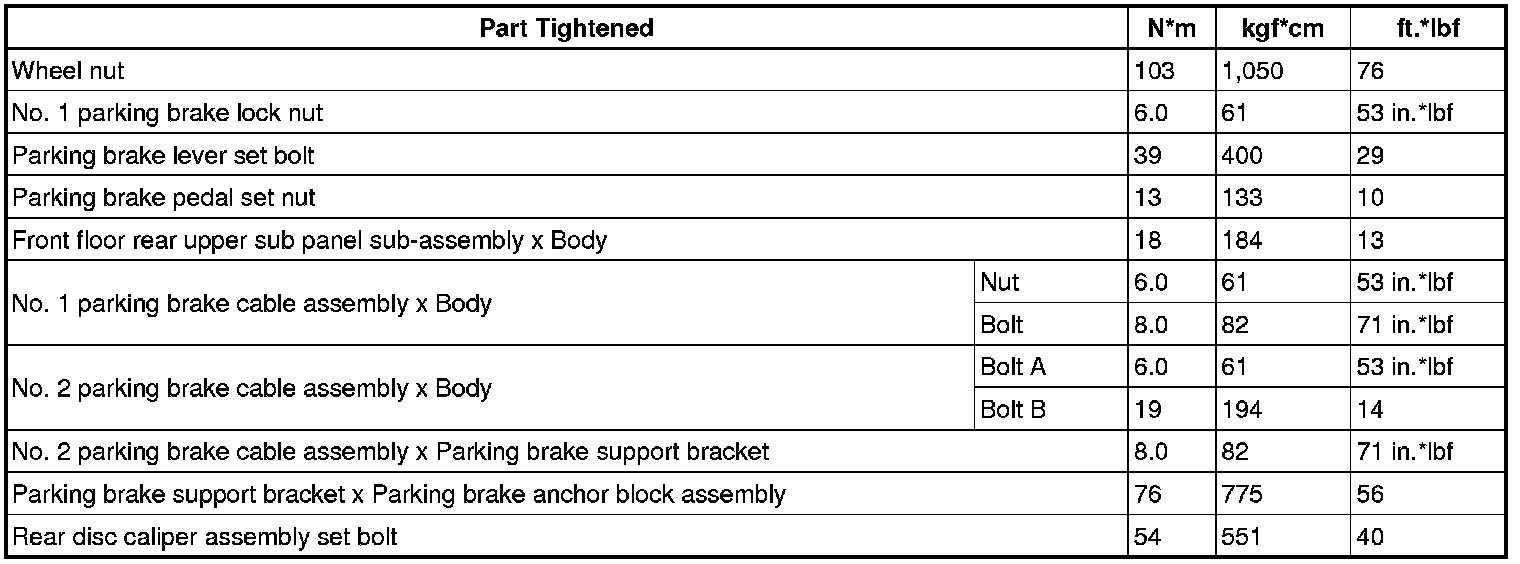 SERVICE SPECIFICATIONS: PARKING BRAKE: TORQUE SPECIFICATIONS