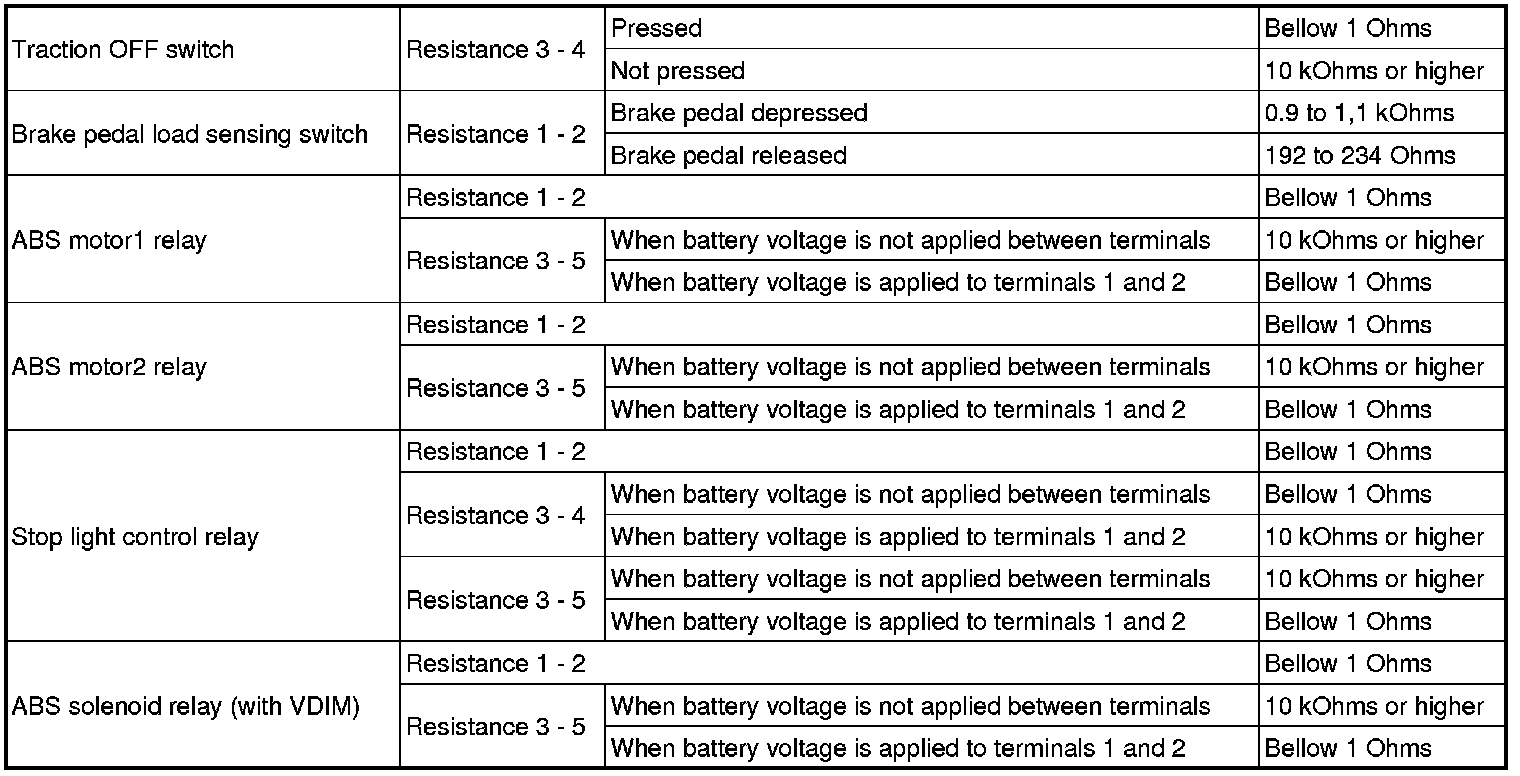 SERVICE SPECIFICATIONS: BRAKE CONTROL: SERVICE DATA