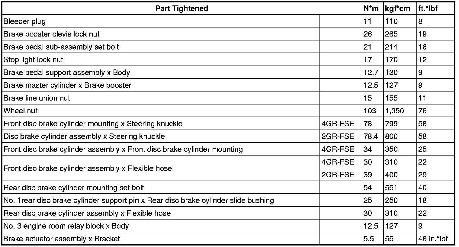 SERVICE SPECIFICATIONS: BRAKE: TORQUE SPECIFICATIONS