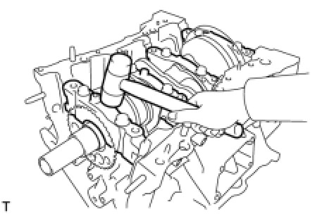 Apply engine oil to the upper bearing, then place the crankshaft on the cylinder block.