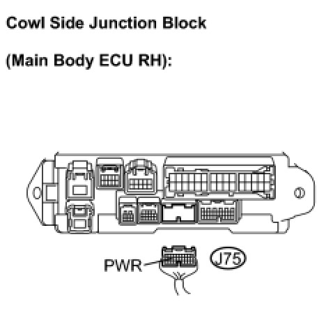 (c) Measure the resistance between terminal PWR of the cowl side junction block (main body ECU RH) and body ground.